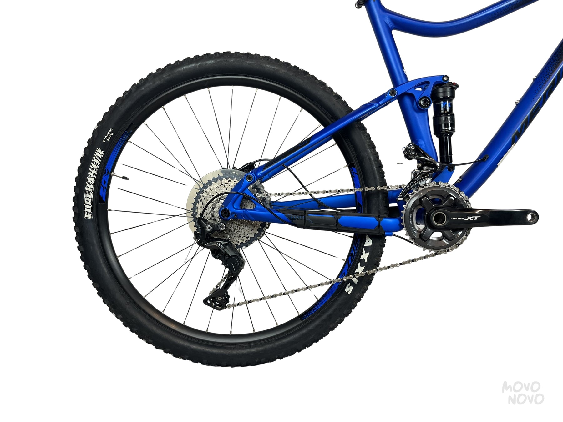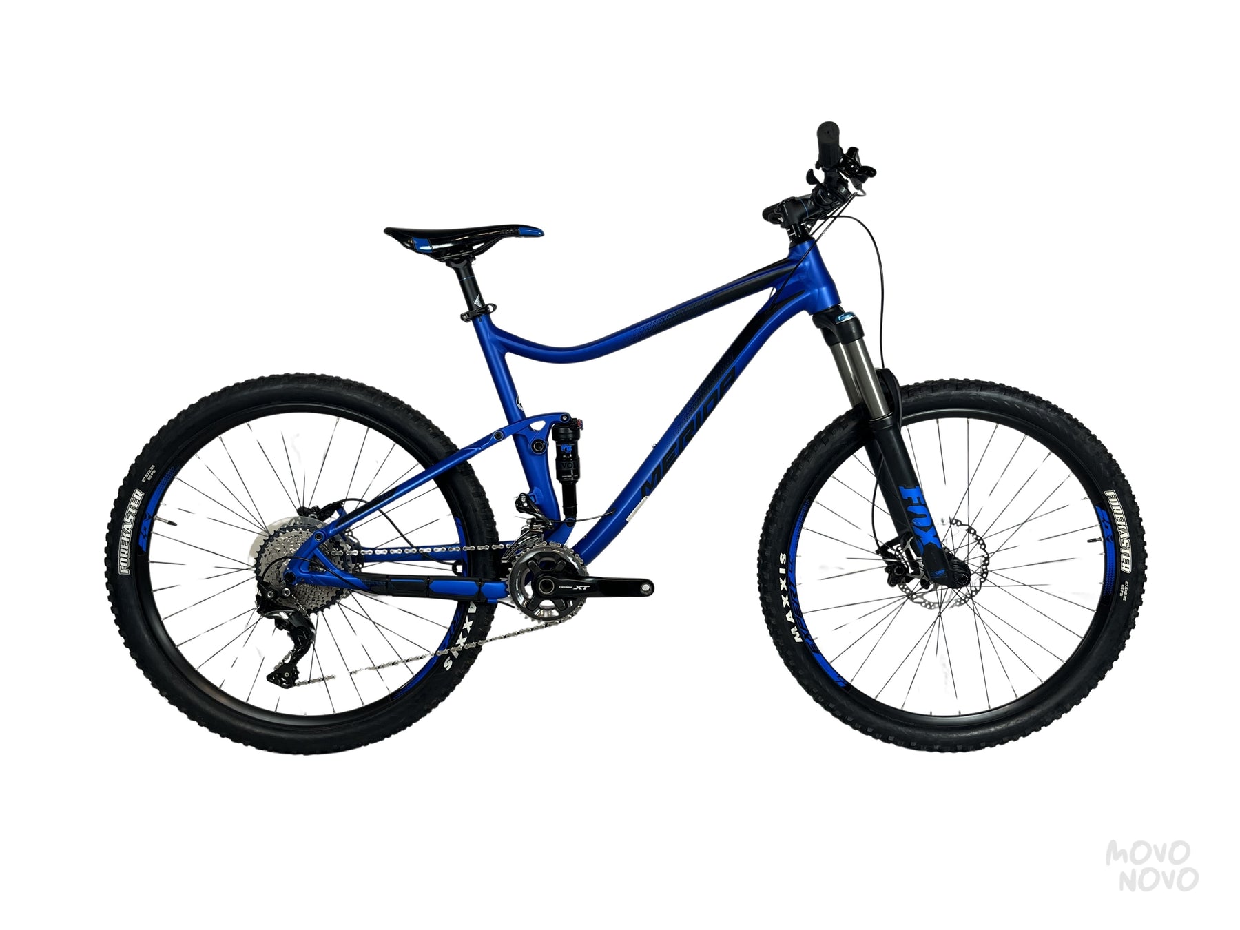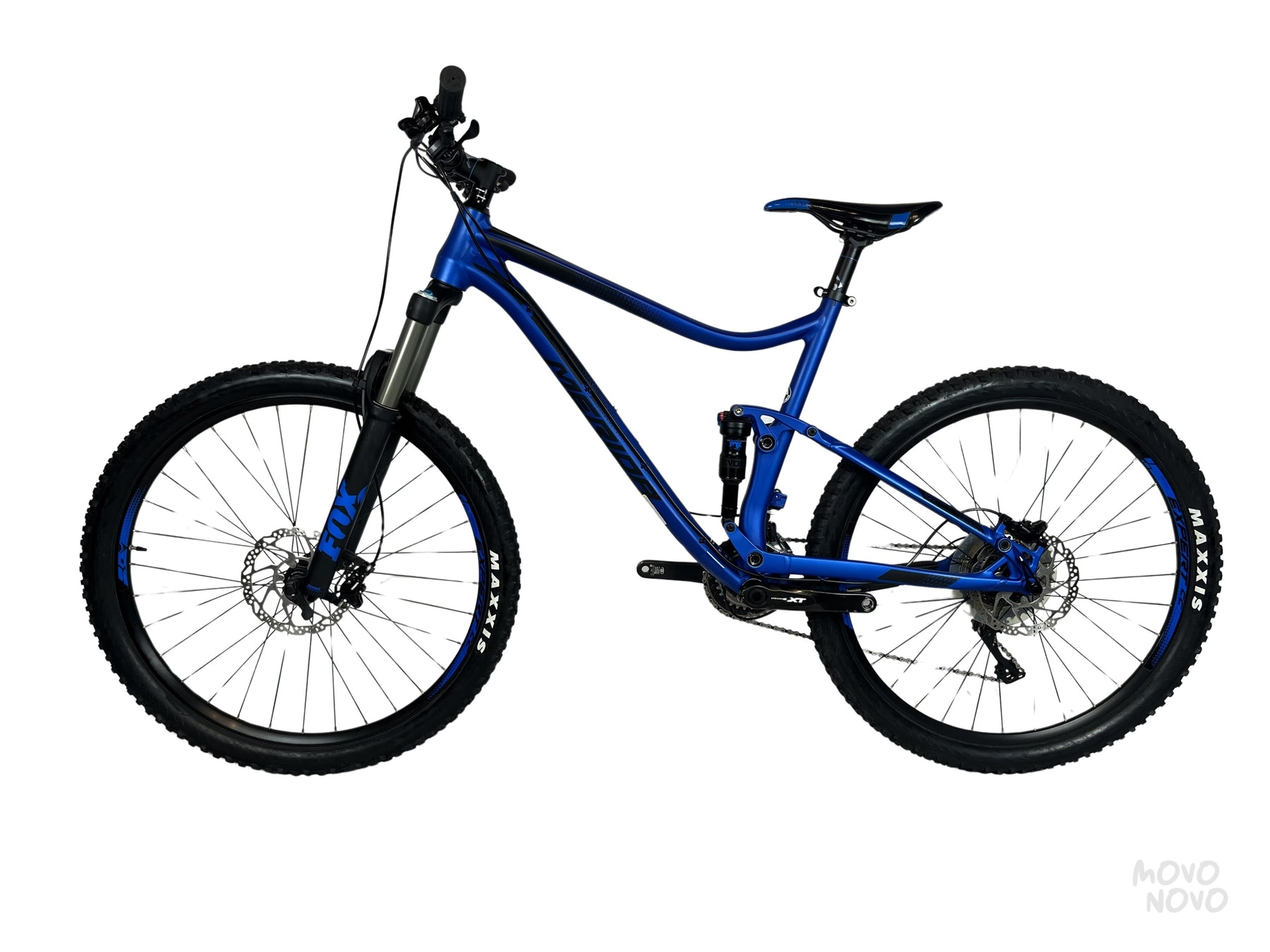Presentamos la Merida ONE-20 7.XT 27.5 BLUE2017, perfecta para el amante de la montaña. Equipada con la renombrada transmisión Shimano XT para cambios suaves y precisos. Su cuadro de aluminio garantiza ligereza con sus solamente 13.5 kg y resistencia duradera. Los frenos de disco Shimano M615 proporcionan un control de frenado confiable en todo momento. Las llantas Maxxis Forekaster 27.5'' con un grosor de 2.4 aportan una tracción excelente, acompañadas de los rines Merida Expert. Incluye una horquilla Fox 34 Rhythm de 140mm y un amortiguador trasero Fox Float DPS de 130mm para un manejo cómodo en terrenos complicados. El confort se completa con un asiento Prologo. Esta bicicleta combina altas prestaciones y diseño, ideal para el aventurero moderno.