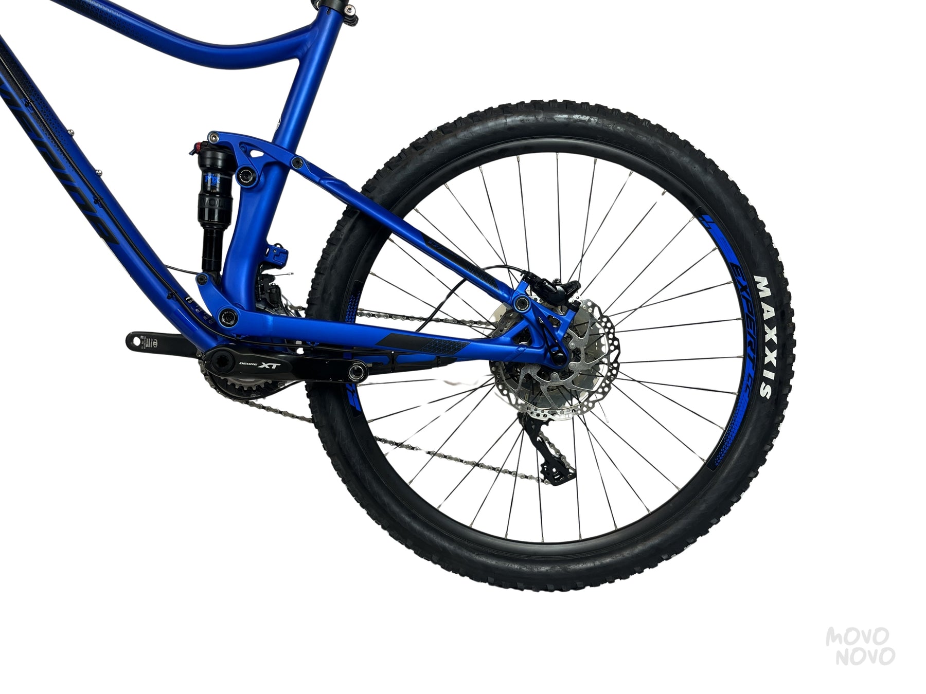 La bicicleta está equipada con una transmisión Shimano XT 2x11, suspension Fox Rhythm 34, shock Fox Float DPS y frenos Shimano BL-M615