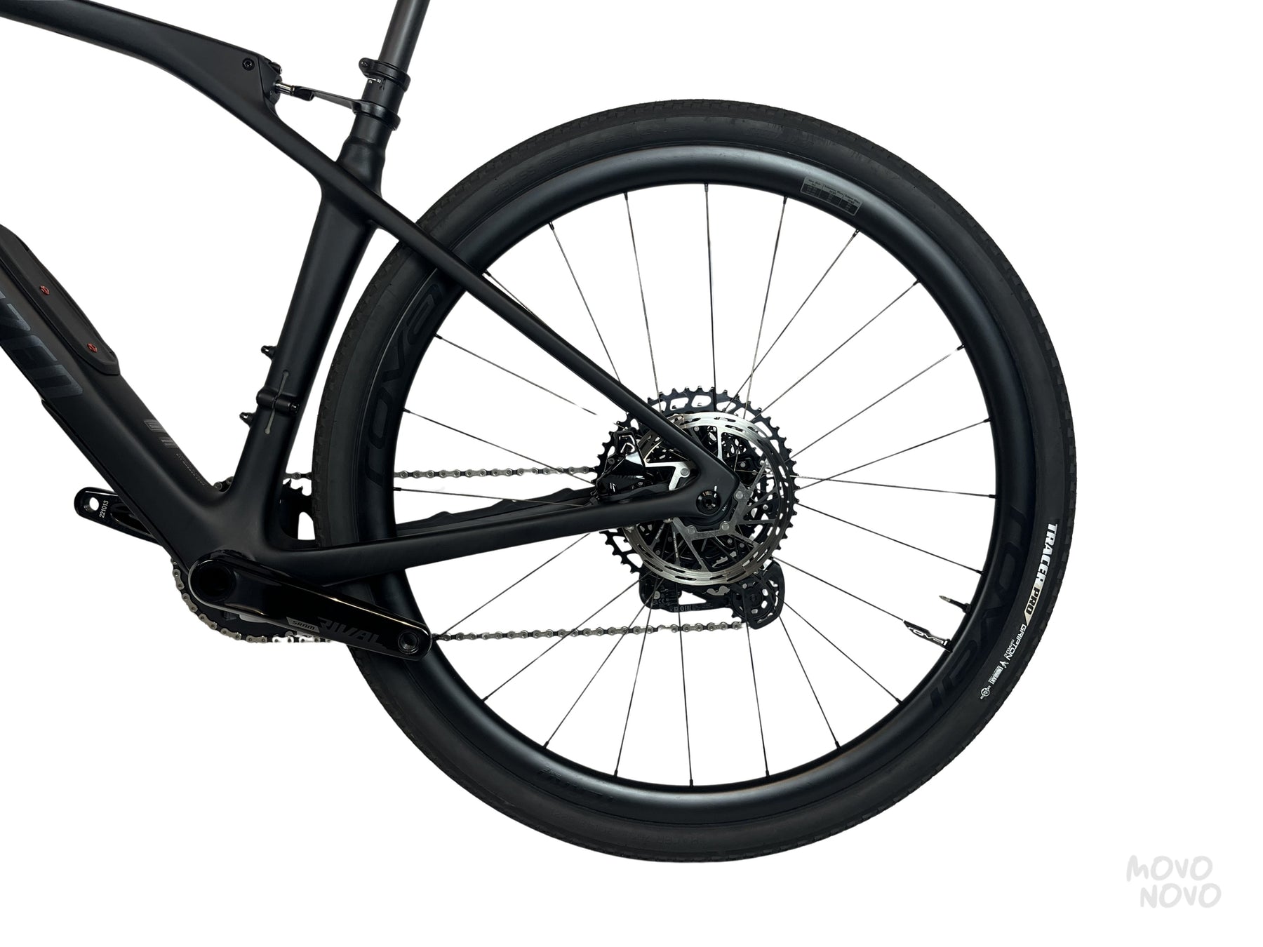 La bicicleta está equipada con una transmisión SRAM Rival/Gx 1x12, frenos Rival