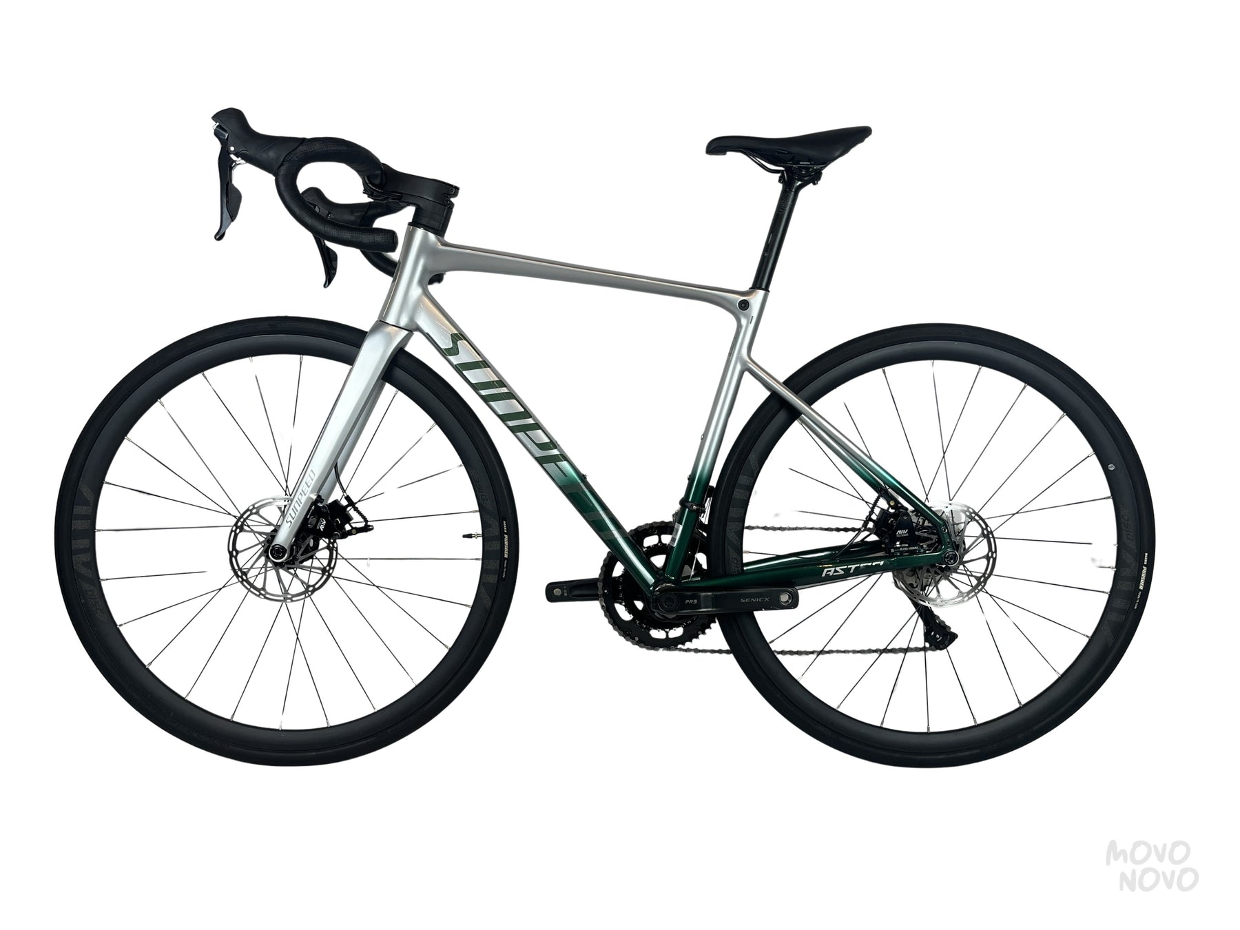 La Sunpeed ASTRO 2023 es una bicicleta de ruta excepcional, ideal para las escaladas y las vueltas largas. Diseñada con un marco de aluminio de talla M, es ligera y resistente, con un peso de sólo 10.4 kg. Destaca sus componentes Shimano Sora, que aseguran un rendimiento superior en cada pedalada. Las llantas Maxxis Pursuer de 700'' y grosor de 28.0, en combinación con los rines ANV Disc, ofrecen un excelente agarre y maniobrabilidad. Sus frenos de disco Shimano Sora tanto delanteros como traseros garantizan un frenado seguro y preciso. Equipada también con transmisión Shimano Sora de 2 platos y 9 engranajes, con relación de 50-34, te ofrece mayor control y eficiencia. Sus detalles como el manubrio Sunpeed de 42mm y el asiento SRDZ aportan gran comodidad y practicidad para cualquier recorrido. Esta bicicleta es verdaderamente especial.